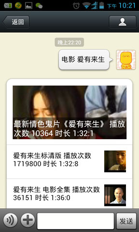 输入:电影+名称 可以欣赏这部电影了,当然有的电影是搜不到的,电影库会慢慢增加。