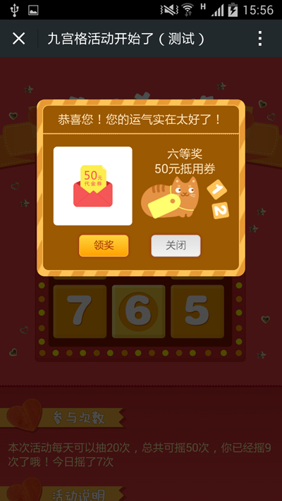 4.中奖奖品直接显示在页面,用户可以直接领奖。