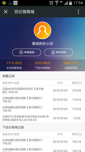3.销售拿佣金:微店卖出商品,您也可以获得佣金。