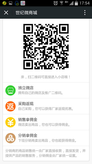 1.独立微店:拥有自己的微店及推广二维码。