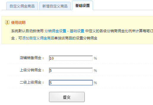 答: B的佣金是100*10% , A的佣金是100*5%,每个店铺都是按这样算的,如果这个店铺刚好是一级分销商,他的上级刚好是分销商自己,就不用再提供给上级分销商5%的佣金了。